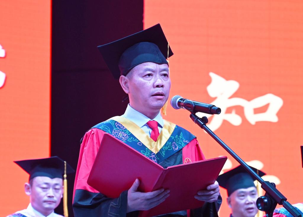 雷存喜宣读了学位授予决定及省级优秀毕业生和省级创新创业优秀毕业生表彰决定。