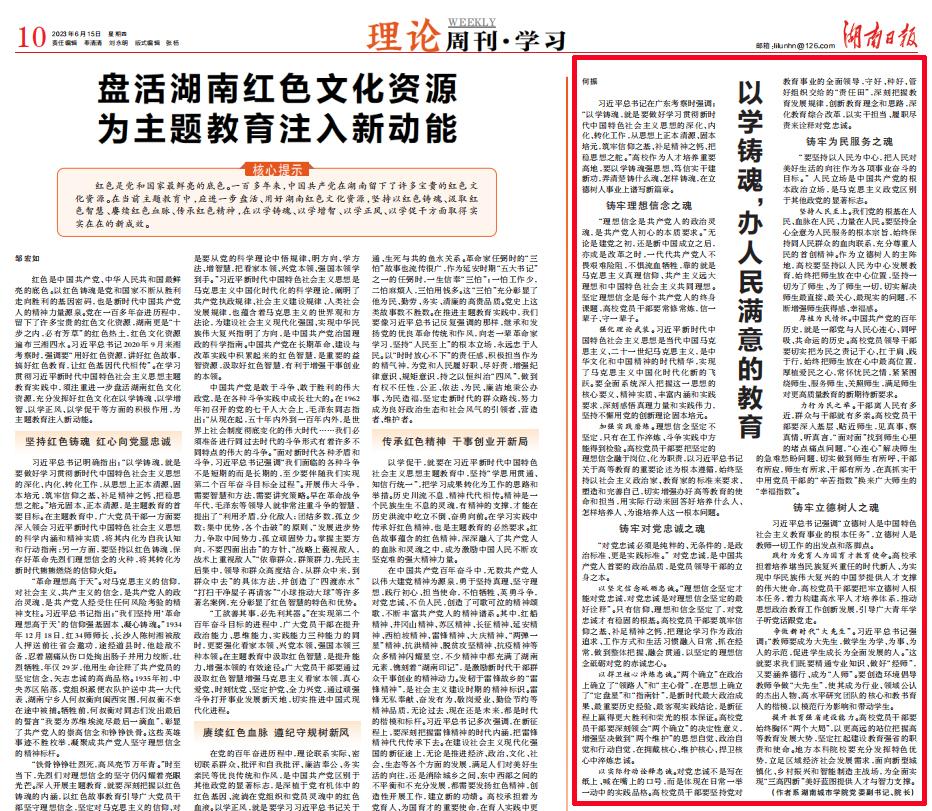 本网讯 6月15日,《湖南日报》10版“理论周刊·学习”刊发九游官方端入口校长何振署名文章《以学铸魂,办人民满意的教育》,全文如下: