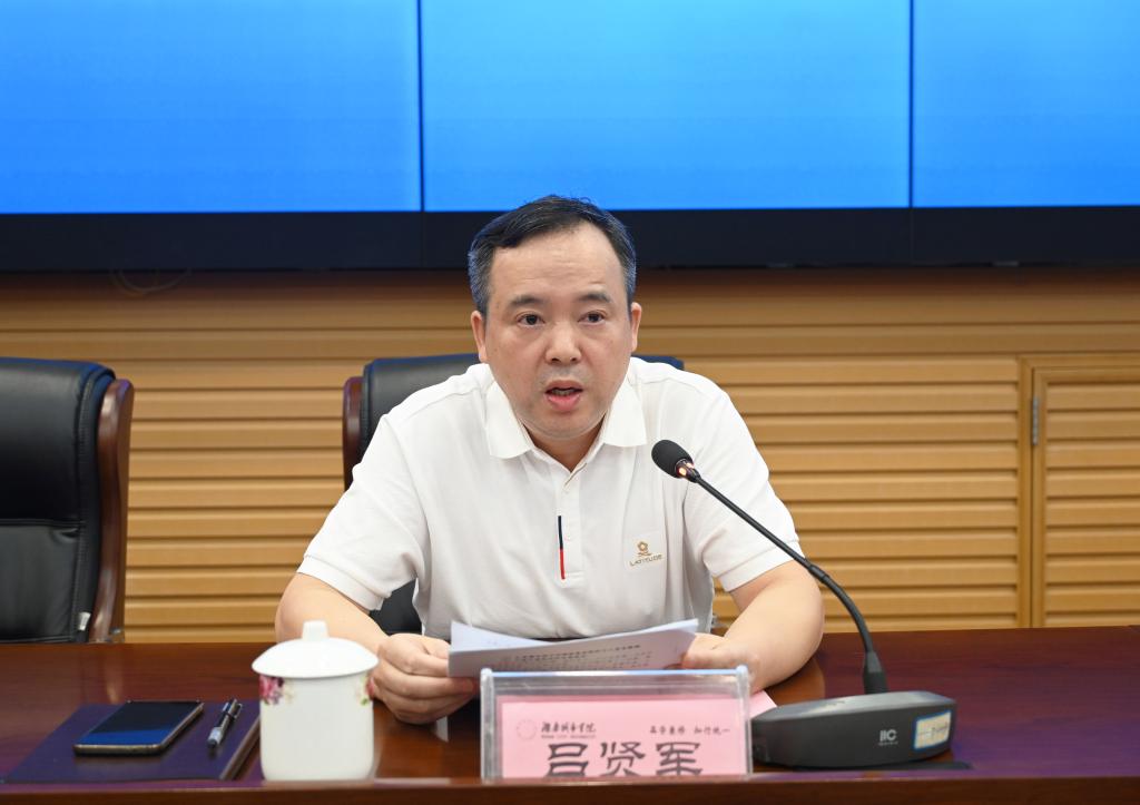 本网讯(记者 文彦波)8月31日,我校2023年秋季学期开学工作会议在图书馆报告厅召开。校党委书记汤放华主持会议并讲话,校长何振总结暑期工作并就新学期开学工作作了布置。全体校领导及副处级以上干部参加会议。