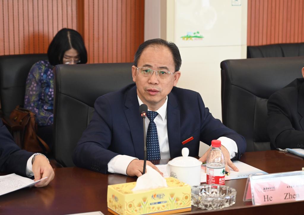 15日下午,见面交流会在办公楼一会议室举行。省教育厅党组书记、厅长夏智伦,益阳市副市长何军田,省教育厅国际交流处处长周芳友,校党委书记汤放华、校长何振、副校长雷存喜出席,相关职能处室和二级学院负责人参会。会议由汤放华主持。