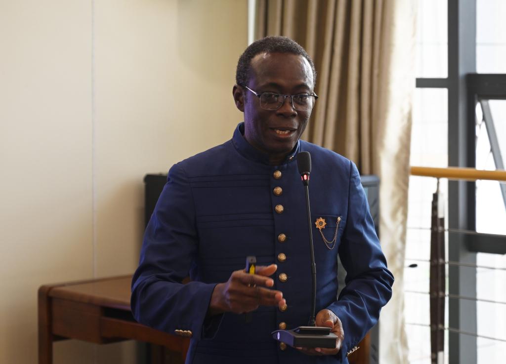 加纳海岸角大学校长约翰逊·尼亚科·邦蓬介绍学校基本情况。