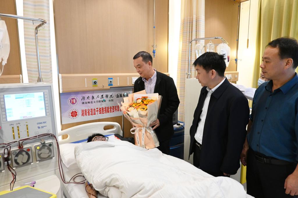 前来慰问的副校长雷存喜向肖友钧赠送了鲜花,对他的无私奉献精神表达敬意。“肖友钧捐献造血干细胞是大爱之举,用自己的爱心点燃了他人生命的希望,为其他同学树立了榜样。学校要大力弘扬这种助人为乐、心怀大爱的精神,引导广大学子成为新时代雷锋精神的传播者、弘扬者和践行者。”