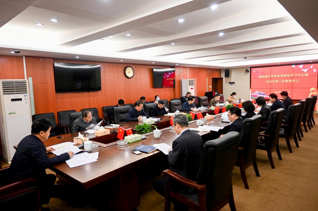 本网讯(通讯员 蔡润晨)3月21日,学校在办公楼一会议室举行党委理论学习中心组2024年第三次集体学习。党委书记汤放华主持会议。