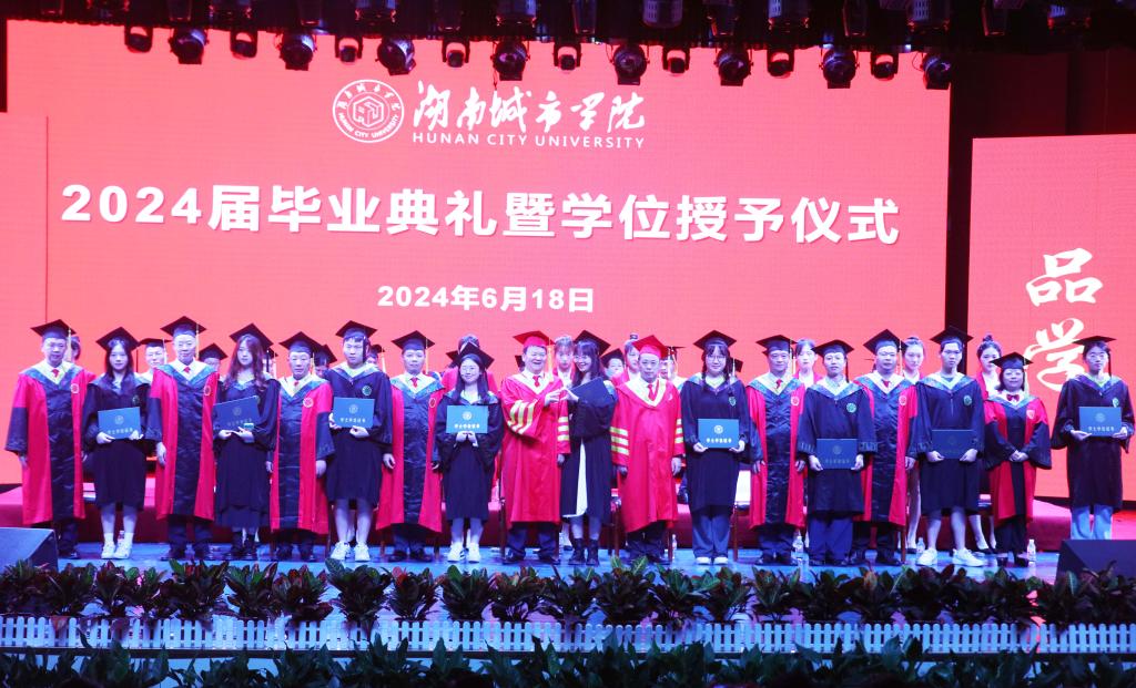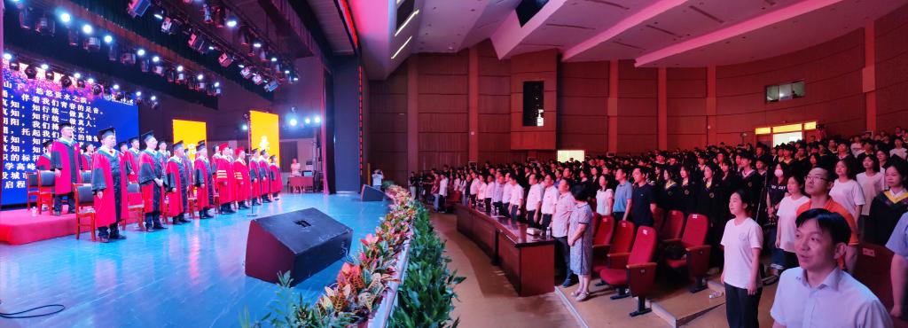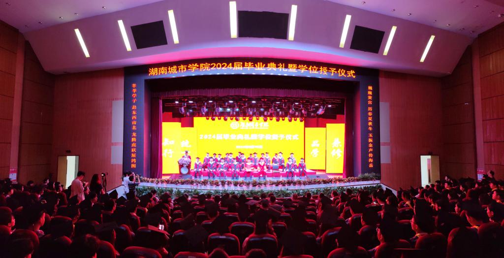 “青青会龙山下,悠悠资水之滨……”激昂的校歌声回荡在音乐厅中,伴随着同学们对母校的依依不舍之情,毕业典礼圆满结束。
