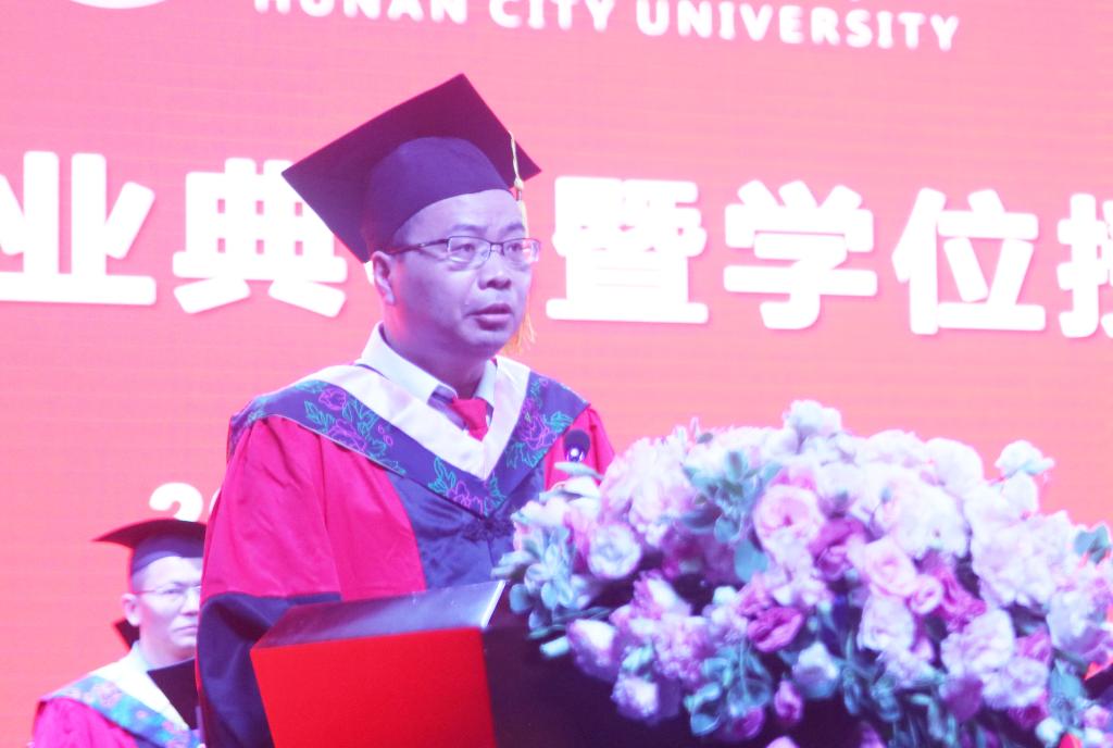 “十年寒窗生羽翼,今日化作北溟鱼,扶摇直上九万里。湖湘圣地,千年银城,书香城院,5874名优秀学子今朝授衣出师。”何振用饱含深情的致辞,向圆满完成学业的同学们致以最热烈的祝贺,向为毕业生成长成才辛勤付出的老师和家长,致以最崇高的敬意。