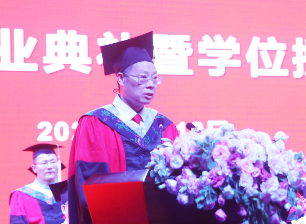 “你们即将翻开新的篇章,去追寻更加广阔的天空”“直上青天揽明月,欲倾东海洗乾坤”“一路生花,光芒万丈”,汤放华希望同学们坚定理想信念,勇担历史使命,在实干中淬炼报国初心,在奋斗中谱写人生新华章。