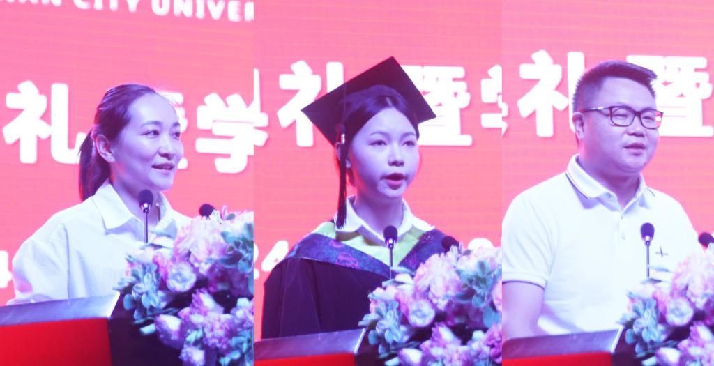 教师代表刘卓博士、毕业生代表夏婷、校友代表雷易群分别发言。