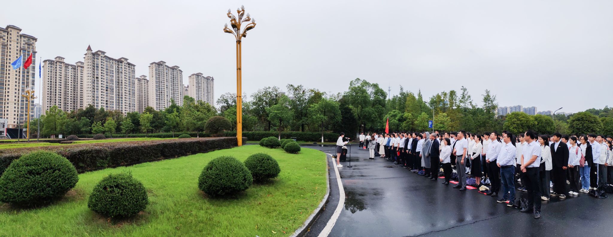 本网讯(通讯员 孔军)壮美山河,盛世华章。10月1日清晨,我校在南门办公楼前坪举行“我和祖国共成长”庆祝中华人民共和国成立75周年主题升旗仪式。校长何振,党委副书记袁志成,党委委员、组织部部长吕贤军,以及党务部门负责人,各二级学院党委书记、副书记、学生代表300余人参加仪式。