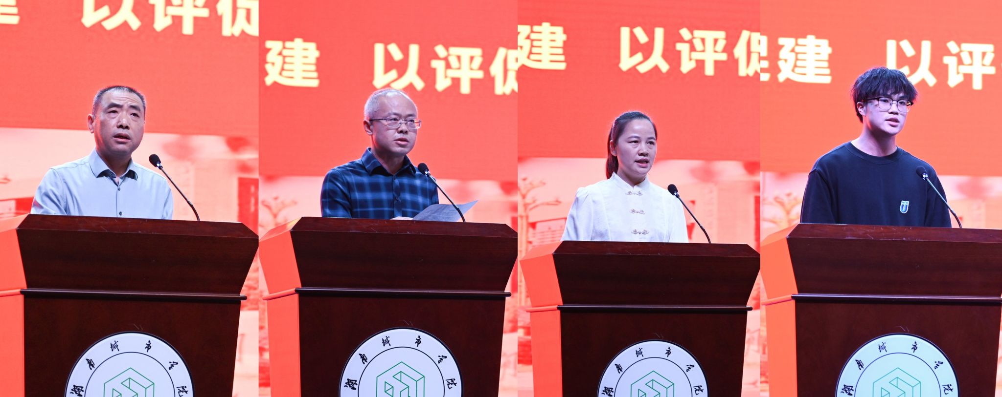 教务处处长阳同光、信息与电子工程学院院长蒋冬初、土木工程学院教师何叶代表教职工分别作表态发言,他们表示,将提高站位,加强协同,奋力冲刺,全力迎评,以高度的责任感和主人翁意识扎实工作,做好表率。人文学院学生黄钊作为学生代表在表态发言中表示,将深入学习评估知识,增强学校认同感,以主人翁意识投入到评估工作中去。