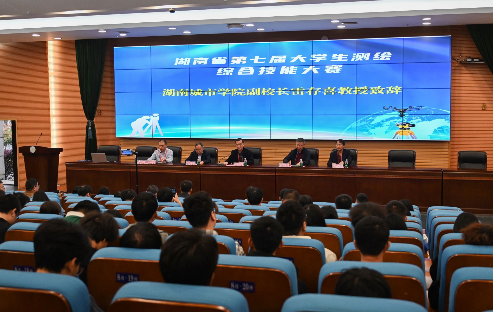 裁判员代表、湖南省第二测绘院秦瑞博士,参赛选手代表、我校学生刘俊杰分别上台宣誓。