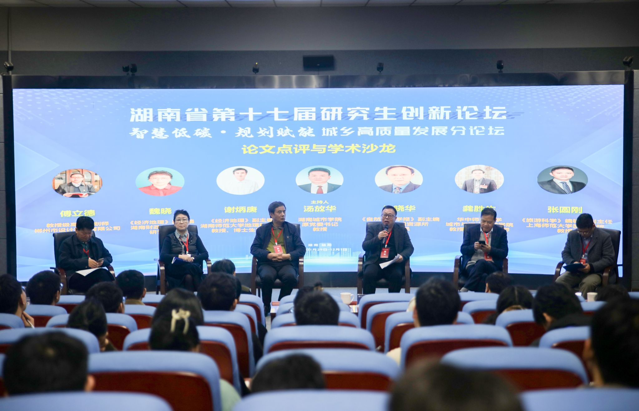 论文点评与学术沙龙环节由九游官方端入口汤放华教授主持。学术沙龙环节邀请了6位国内知名专家学者和与会研究生共同参与,围绕“数字赋能城乡空间规划”“低碳安全与健康城市规划”“新时代乡村振兴与规划建设”“城市设计与城市更新”等议题进行了深入探讨。