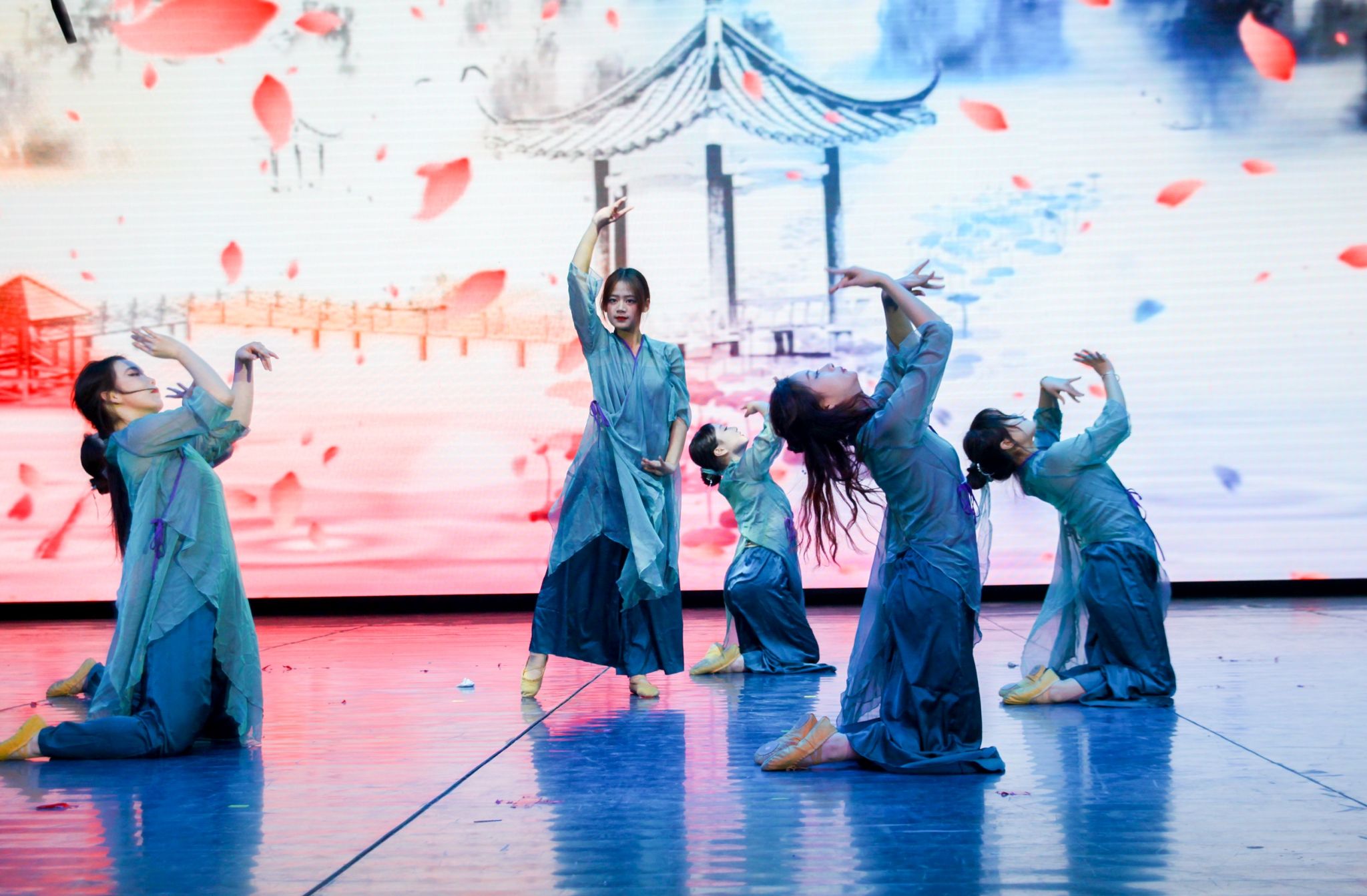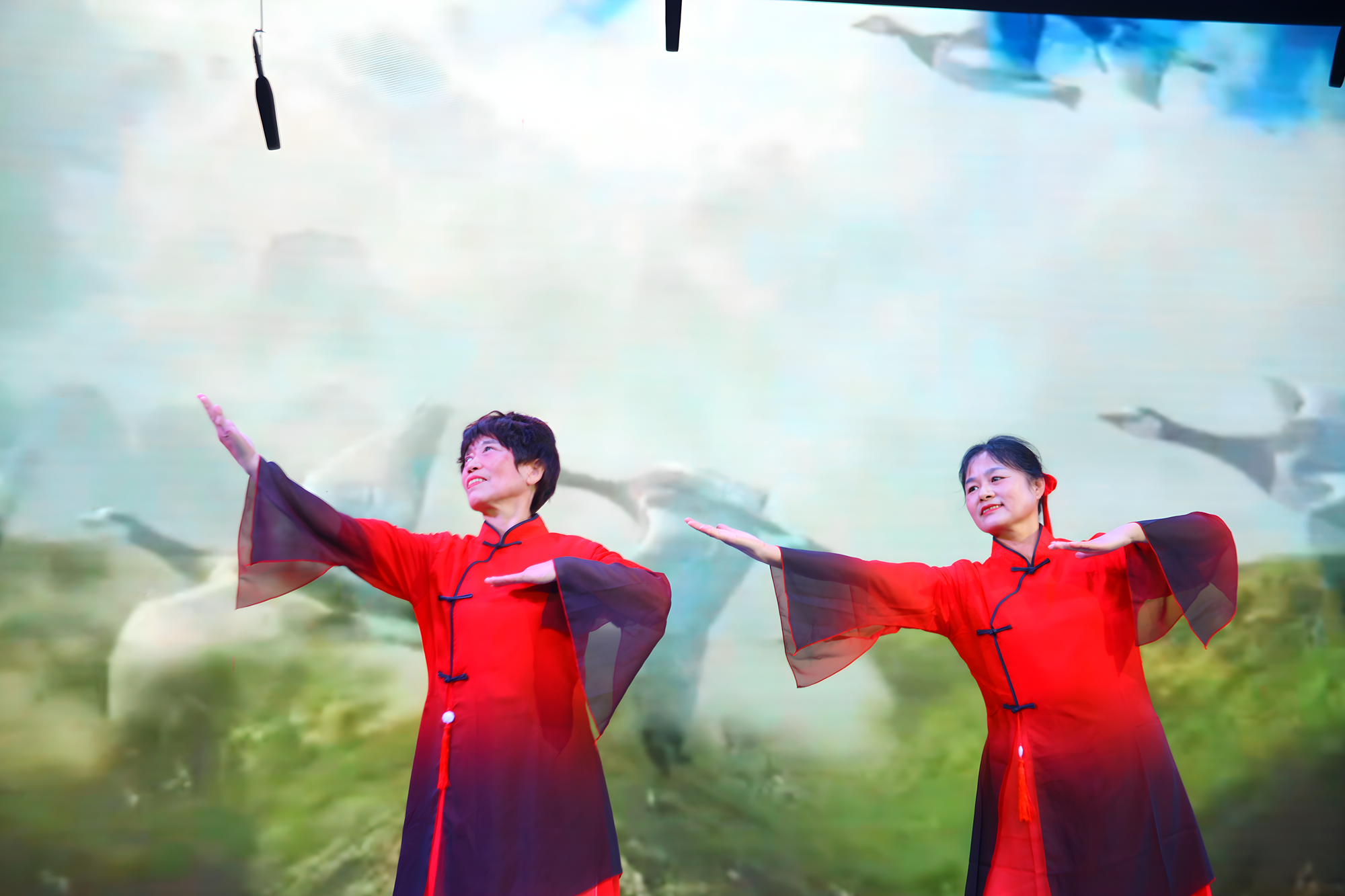 晚会在磅礴大气的《醒狮》中拉开帷幕,街舞社15名身着传统服饰的舞者,在铿锵有力的音乐声中,将传统醒狮舞与街舞相结合,瞬间点燃了现场氛围;离退休教师们带来的太极舞《鸿雁》,将太极拳的招式和动作巧妙地融入舞蹈中,为观众呈现了一种独特的视觉效果;由中外学子联合呈现的歌舞《相亲相爱一家人》不仅展示了中外学生们的才艺与风采,更以其独特的文化融合和深情演绎,激发了现场观众的热烈反响,来自乌克兰、摩洛哥、加纳等6个国家的留学生身着各具特色的服饰,伴随着欢快的音乐节奏,翩翩起舞,收获现场观众们的热情掌声;研究生院带来的舞蹈《桃花朵朵开》,通过精湛的舞技和默契的配合,将这支舞蹈的欢快与喜庆展现得淋漓尽致。