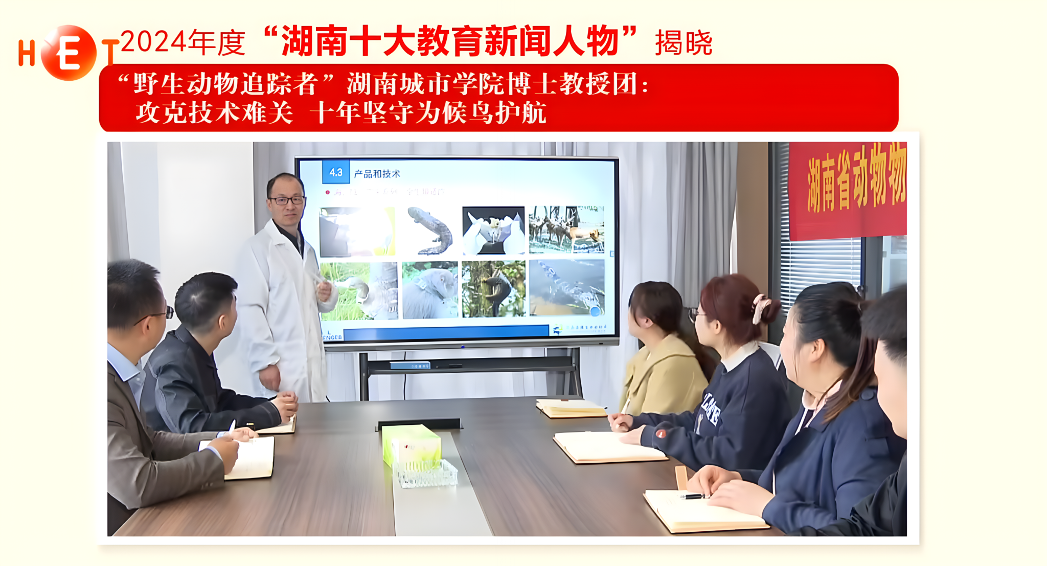 2014年,周立波、黄田等教师成立博士教授团,开始持续关注野生动物生存状态,护航候鸟迁徙。十年寒来暑往,博士教授团成员专注于野生动物卫星追踪技术研发、大数据服务,开发并定型50多款产品,占领国内80%的市场份额,建成全国最大的野生动物追踪大数据中心,打破野生动物追踪技术国外垄断,填补了我国在野生动物追踪技术领域的空白,保障野生动物追踪数据及相关敏感地理环境数据的信息安全。