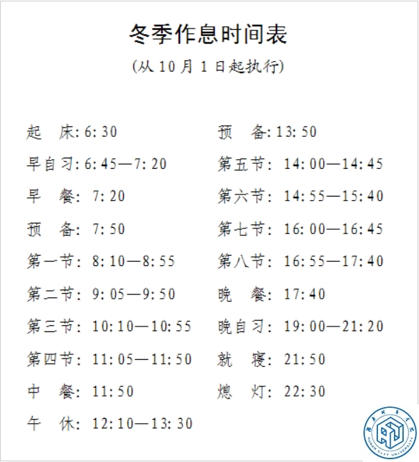 1.冬季作息时间表