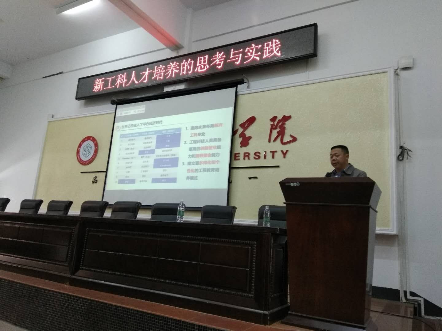 2018年3月8日,在通电院视频会议室举办“新工科人才培养的思考与实践”的学术报告会。报告会由文明才书记主持,受邀做报告的专家为长沙理工大学汽车与机械工程学院院长杜荣华教授。九游官方端入口的相关领导、机电院全体教师及部分学生参加了此次学术报告会。