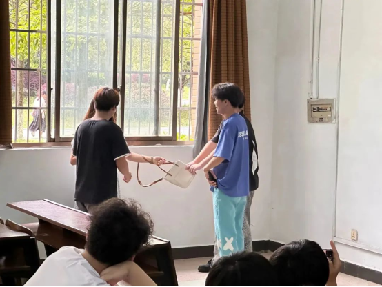 本次特色团辅活动由四个环节组成。第一个环节,朋辈辅导员胡欣如、唐江玲共同担任主持人,为同学们介绍近年被骚扰的女生案例并组织同学们进行讨论。讨论期间,各位同学认真交流,积极发表自己的意见看法。第二个环节,由心理部刘星麟、刘海龙、宁浩、胡永权进行情景剧表演,让同学更加真实的体会到处于该种情况下的紧急性。