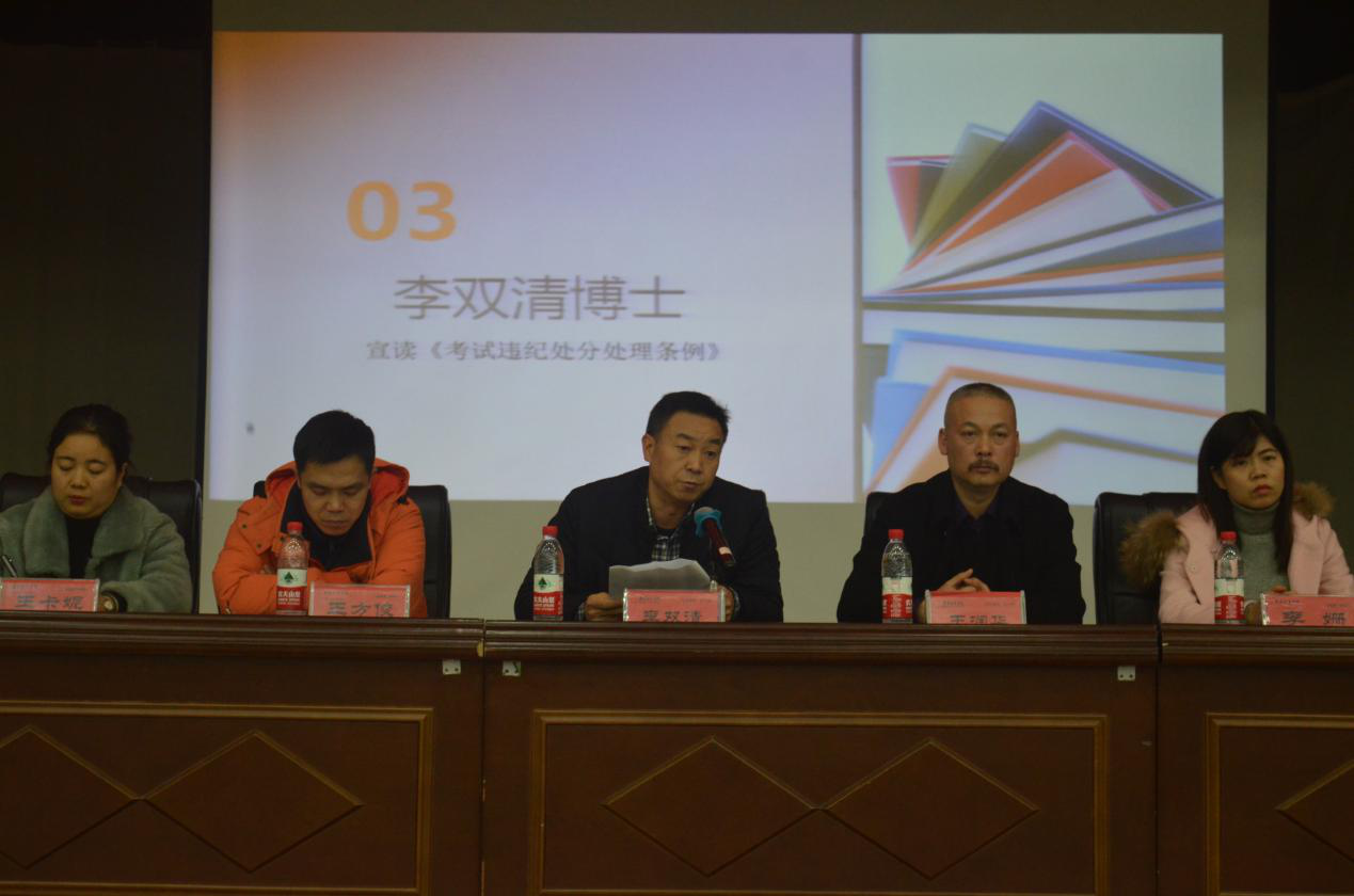 会议由学工办负责学风建设工作的张力老师主持。副院长李双清老师宣读了《九游官方端入口考试违纪处分处理条例》,解读了考试作弊行为的认定和处理办法。党委副书记王润华老师解读了国家考试入刑处理条例,对公平诚信考试提出了要求;同时,对2019届学生寒假社会实践安排、社会实践报告做了部署;强调了学生寝室用电安全、寒假放假出行交通安全、学生自身财产安全的安全注意事项。