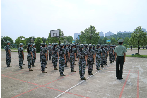 本次军训历时12天,训练教官由本校学生担任,训练场地分布在学校各个空地。教官们按照要求遵循学校的规定对同学们进行训练,其训练强度之大,训练要求之严格前所未有。但是,即使烈日当空,但管理学院的学子们热情不减,积极地投入到各个项目的训练之中。在军训中,有的同学因为酷暑病倒,但是凭借着顽强的意志,稍有好转便坚持训练,有的同学因为身体原因不能参加训练,也和同学们一起共进退。站军姿、踢正步、喊口号,教官手把手教,学生们认真的学,各方阵队列整齐,精神饱满。短短几天,天气已转凉,天上飘起了雨。但是同学们和教官们仍然寻找空地,不敢懈怠训练,即使几个连队挤在小小的食堂里也不曾抱怨。