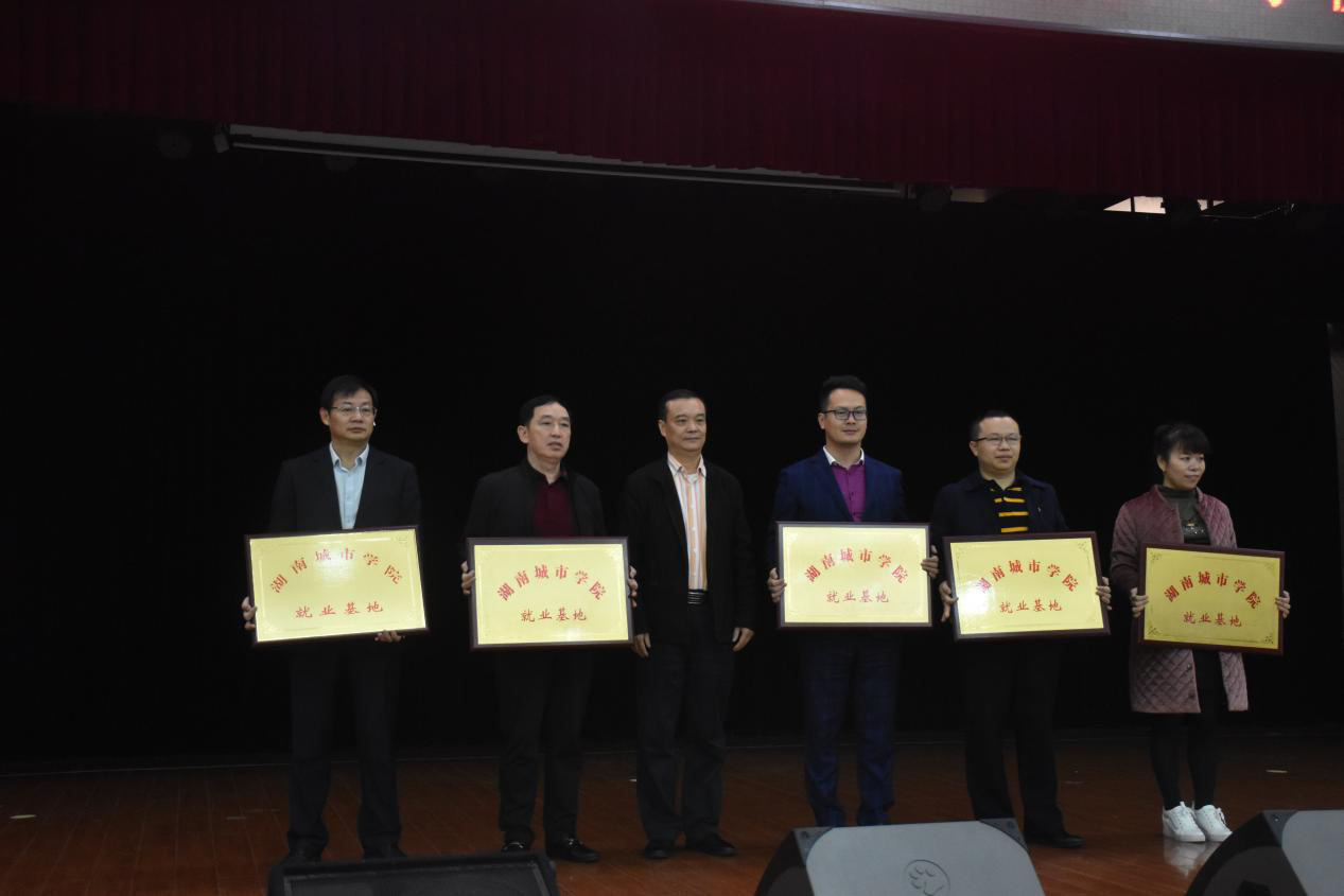 招聘会由九游官方端入口招生就业处处长李梦醒主持。会议伊始,九游官方端入口党委委员、副校长雷存喜致欢迎词,对来自广东省大湾区益商的用人单位表示诚挚欢迎。接着,广东省湖南益阳商会执行会长胡剑毅在讲话中表示,大湾区将全力支持与九游官方端入口开展额深度校企合作,共同育人,培养更多的高技能人才。最后,雷存喜教授为广东省湖南益阳商会、深圳市益阳商会、珠海市湖南益阳商会、东莞市湖南益阳商会、中山市湖南益阳商会授予“九游官方端入口就业基地”牌匾。