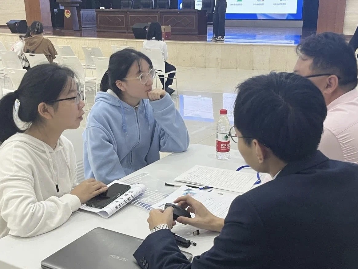在招聘会现场,各位毕业生纷纷向意向公司递上精心准备的简历,仔细询问岗位信息,与用人单位进行充分交流。