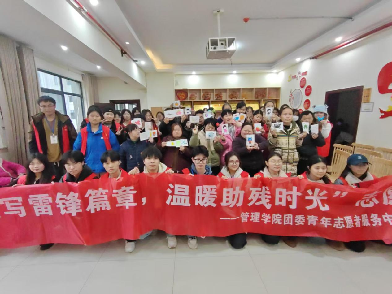 本网讯(通讯员 李钰 黄景熊)承善者志,行雷锋事,助残路,暖流年。为了弘扬“奉献、友爱、互助、进步”的雷锋精神,向残障群体提供生活帮扶、情感陪伴及互动支持,管理学院团委青年志愿者服务中心与社会实践部于2025年3月13日下午14时整在益阳市残疾人托养服务中心举办“续写雷锋篇章,温暖助残时光”活动。