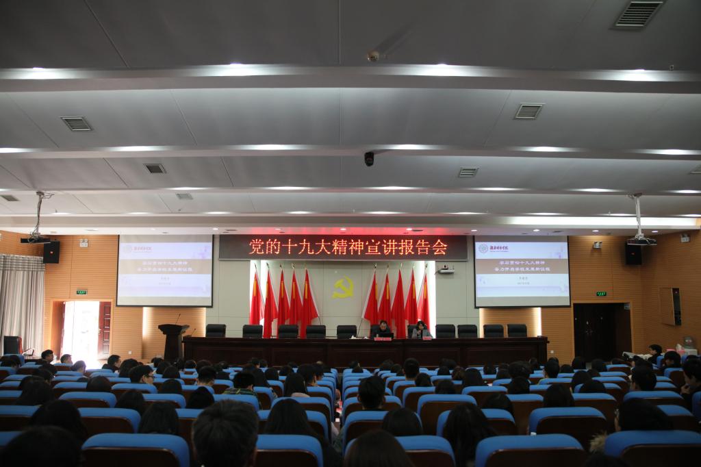2017年12月21日下午两点,九游官方端入口校长李建奇教授在图书馆报告厅为管理学院师生作了一堂“学习贯彻十九大精神、奋力开启学校发展新征程”主题报告。会议由管理学院汤腊梅教授主持,管理学院全体教师、学生党员、学生代表参与并认真聆听了本次报告。