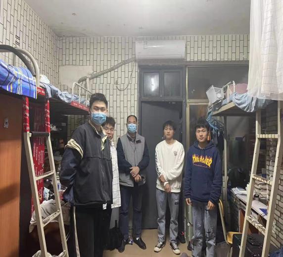 郑老师一行先行来到10栋对大二、大三男生进行下寝走访,主要强调疫情的防控工作,要求同学们坚持防疫“三件套”(科学佩戴口罩、保持社交距离、注意个人卫生),牢记防护“五还要”(口罩还要戴、社交距离还要留、咳嗽喷嚏还要遮、双手还要经常洗、窗户还要尽量开),做好防疫“四部曲”(加强个人防护、按时健康打卡、开展每日自主健康检测、非必要不出益);其次强调要营造良好的宿舍学习氛围,不睡懒觉、不玩游戏,宿舍要时时刻刻保持干净通风。随后,郑老师一行来到26栋对大四男生进行访谈,除了强调疫情防控之外,还了解毕业生同学的毕业设计完成进度情况、就业情况以及目前同学面临毕业前的一些困惑,并与同学进行深入交谈,及时解决一些困惑问题。