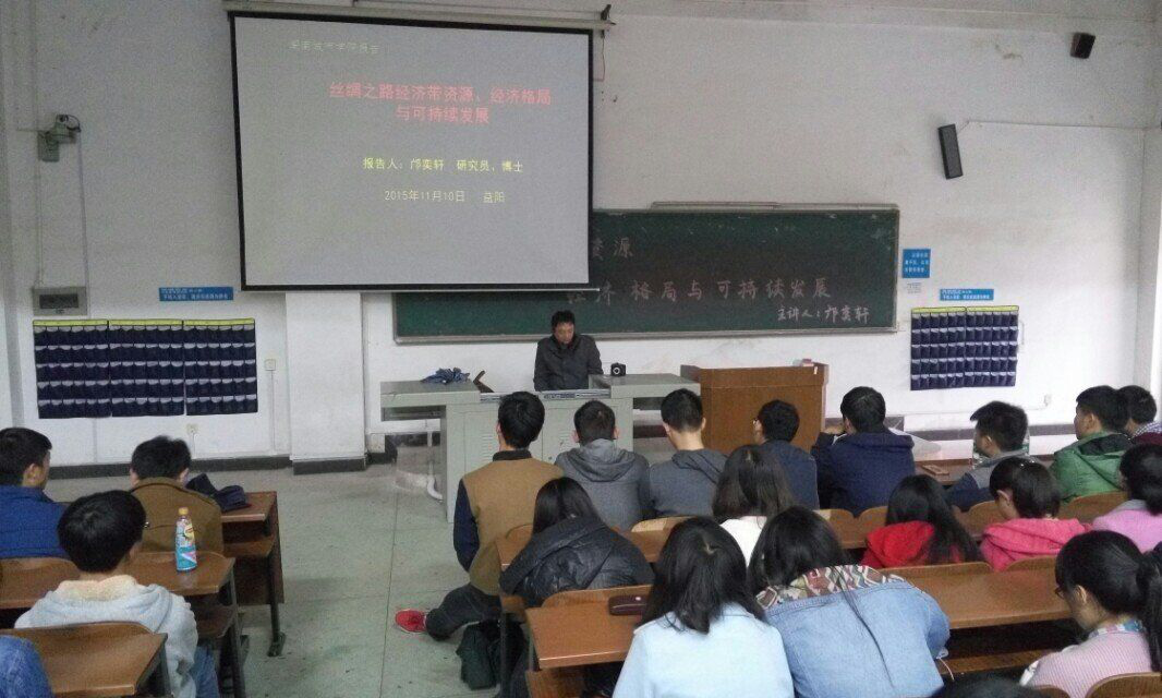 九游官方端入口优秀校友、湖南省社会科学院农研中心研究员邝奕轩教授为我院新生们开展了以“丝绸之路资源、经济格局与可持续发展”为主题的报告讲座,讲座在一教105教室举行。我院刘刚老师和王方俊老师以及全体大一新生聆听了讲座。