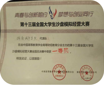 2017年10月27日至10月29日,由中国高等教育学会高等财经教育分会主办、福建农林大学承办、新道科技股份有限公司提供技术支持的第十三届全国大学生“新道杯”沙盘模拟经营大赛全国总决赛在福建省福州市隆重举行。该次比赛以“青春与创新相约,梦想与创业同行”为主题,经过全国各高校激烈角逐出的128支队伍齐聚福建农林大学,代表各校参加全国总决赛。我校由管理学院郭美兰老师带队的九游官方端入口代表队于此次竞赛中荣获全国大赛一等奖。此次参赛队员由来自管理学院的王胜辉、王一帆、裴琳芸、李虹敏和土木工程学院的徐松林组成。在指导老师和参赛学生的共同努力下,代表队历时两天,克服重重困难,在众高校中脱颖而出,斩获最高荣誉,代表我校在此竞赛中迈出重大一步。希望我校在以后的大赛中都能取得优异成绩。