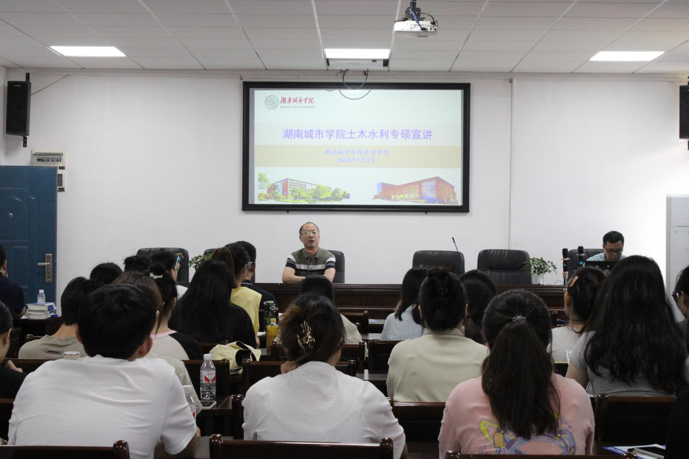随后,管理学院研究生办张胜副教授对土木水利专硕的课程设置与研究方向进行了详细介绍。他还特别围绕硕士点的具体情况、学校的奖励政策以及当前的考研形势这三个方面进行了深入浅出的讲解,并结合自身经验,为学生们提供了科学合理的备考建议。