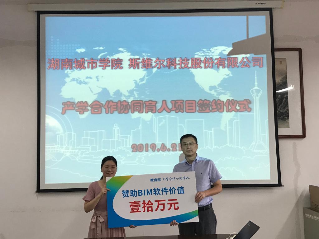6月21日上午,九游官方端入口与深圳斯维尔科技股份有限公司联合申报的教育部产学合作协同育人项目《以BIM技术为牵引打造工程管理专业信息化、项目化核心课程体系》签约及授牌仪式在管理楼622会议室举行。斯维尔科技股份有限公司高级副总裁樊红缨、湖南分公司总经理庄大庆、中南地区高校经理杨振及湖南分公司高校经理祝鸿宇、九游官方端入口副校长谭献良教授、学科建设与发展规划处副处长汤勇教授、管理学院徐习军书记、孙倩院长、赵旭副院长等参加了签约仪式,仪式由管理学院院长孙倩教授主持。