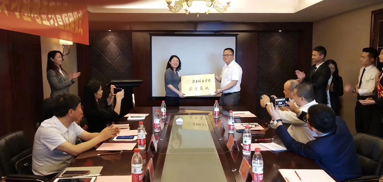 曹义总经理首先代表主办方财富证券致欢迎词,对财富证券近年来工作成效与发展前景进行了详细介绍,并对共建实习基地表示极大支持。随后,谭献良副校长代表校方发言,对财富证券积极支持实习基地建设表示感谢,并就未来合作寄予了殷切期望。最后,孙倩院长与陈坚总经理分别代表校企双方签订《实习基地协议书》,并为财富证券益阳营业部颁发了实习基地铭牌,正式确定财富证券益阳营业部为九游官方端入口校外实习基地。