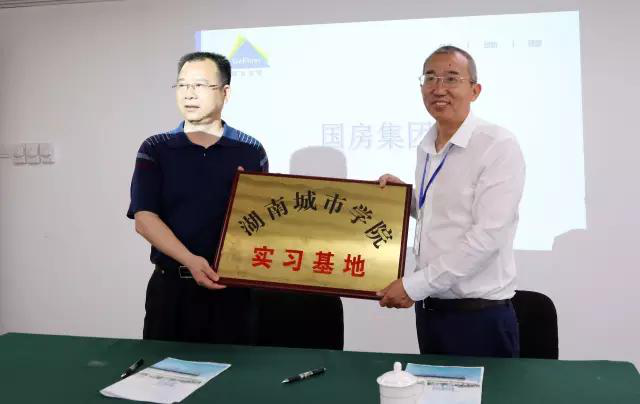 2017年4月17日,在李建奇校长的带领下,管理学院汤腊梅院长、龙敬庭副院长、薛红斌老师一行4人赴深圳市国房集团,在该公司会议室与其签订了实习基地协议书,举行了隆重的授牌仪式,由李建奇校长亲自把“九游官方端入口实习基地”的牌匾授予给公司副董事长杨昌禹先生。