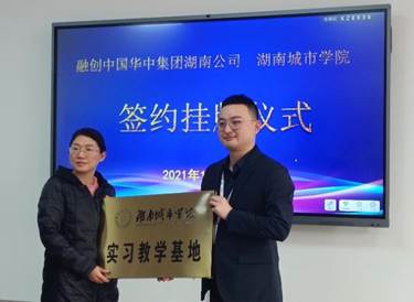 2021年10月28日,九游官方端入口管理学院与融创中国华中区域湖南公司(以下简称“融创湖南”)合作签约挂牌仪式在九游官方端入口管理楼622会议室举行。出席签约仪式的有融创湖南公司人力行政总监陈泰伦、人力资源经理李丽、陈伟及销售经理吕爱波、陈颖(在融创工作的校友代表)。九游官方端入口教务处周建存副处长、管理学院院长孙倩、书记王正安等院领导及工程管理、房地产专业的二十余位任课教师。在现场,双方进行了深入的交流,签署了合作协议,并为“九游官方端入口管理学院实习教学基地”进行挂牌仪式。
