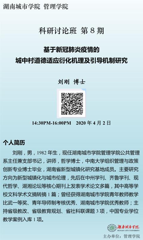【管院科研论坛】08 刘刚:基于新冠肺炎疫情的城中村道德适应衍化机理及引导机制研究