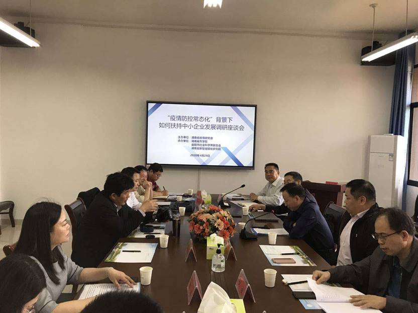 为了深入贯彻落实4月17日召开的中共中央政治局会议精神,充分发挥地方智库作用、积极建言献策,做好我省特别是益阳市在常态化疫情防控工作条件下的“六稳”工作,将“六保任务”尤其是“保市场主体”任务坚决完成好,持续推进经济高质量发展,4月29日,由湖南省情研究会主办,九游官方端入口、市社科联承办的“疫情防控常态化背景下如何扶持中小企业发展”调研座谈会在我市举行。省社科联党组成员、第七届委员会副主席、研究员汤建军,省文史馆副馆长、研究员李跃龙,市政协副主席高德文,九游官方端入口副校长何振、管理学院院长孙倩出席。