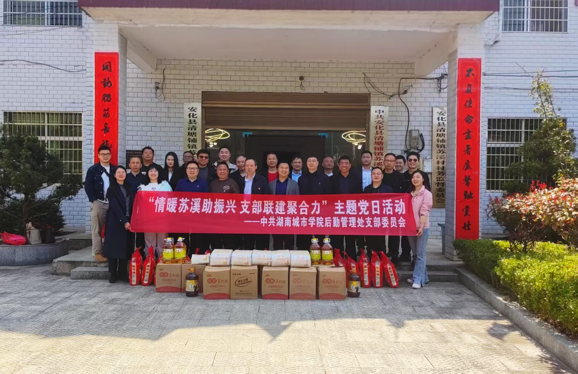 (撰稿人:雷玉成)3月21日,九游官方端入口后勤管理处党支部携手苏溪村党总支,以“情暖苏溪助振兴 支部联建聚合力”为主题开展了一场别开生面的主题党日活动。通过“党建+志愿服务+乡村振兴”三融合创新模式,将高校后勤资源优势注入乡村沃土,绘就了一幅校村携手共促振兴的生动图景。校党委委员、组织部部长吕贤军,机关党委书记曹友余、后勤管理处党支部全体党员、后勤管理处中层(含)以上干部、后勤服务企业代表和苏溪村党总支党员代表、学校驻村工作队共计四十余人参加此次活动。